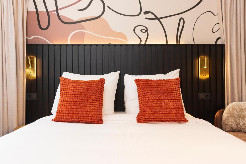 This room has a famous Auping double bed, private bathroom, air conditioning, television and coffee-tea facilities .